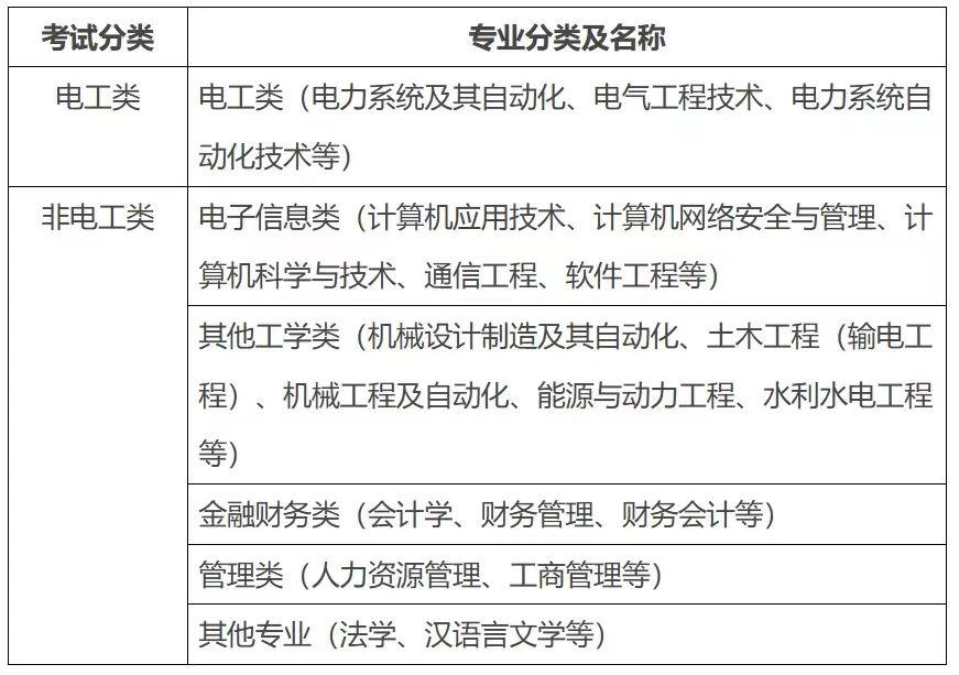 筆試分為電工類、非電工類(電子信息類、其他工學(xué)類、金融財務(wù)類、管理類、其他專業(yè))兩類,采取閉卷方式進(jìn)行??荚嚧缶V詳見附件。